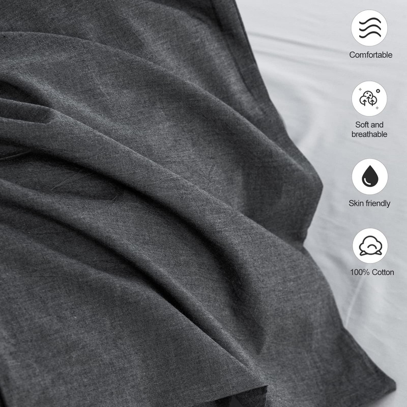MooMee Bedding Pillowcases Pack of 2 100% Washed Cotton Linen Like Textured Breathable Durable Soft Comfy (Dark Grey, King)