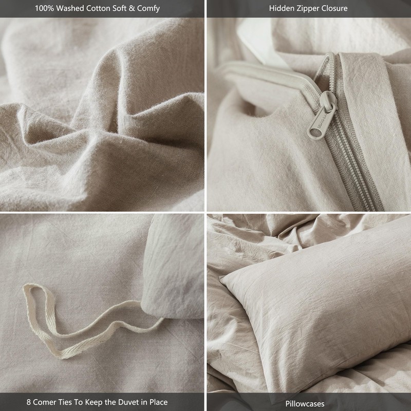 - Great Texture & Comfort: Looks like linen, feels like cotton, with a lived-in, slightly wrinkled look, which offers that feeling of staying at a nice resort where the duvet cover sets are always crisp, clean and comfortable. The relaxing look of this tannish linen grey bedding set and the cool texture make it hard to get out of bed.