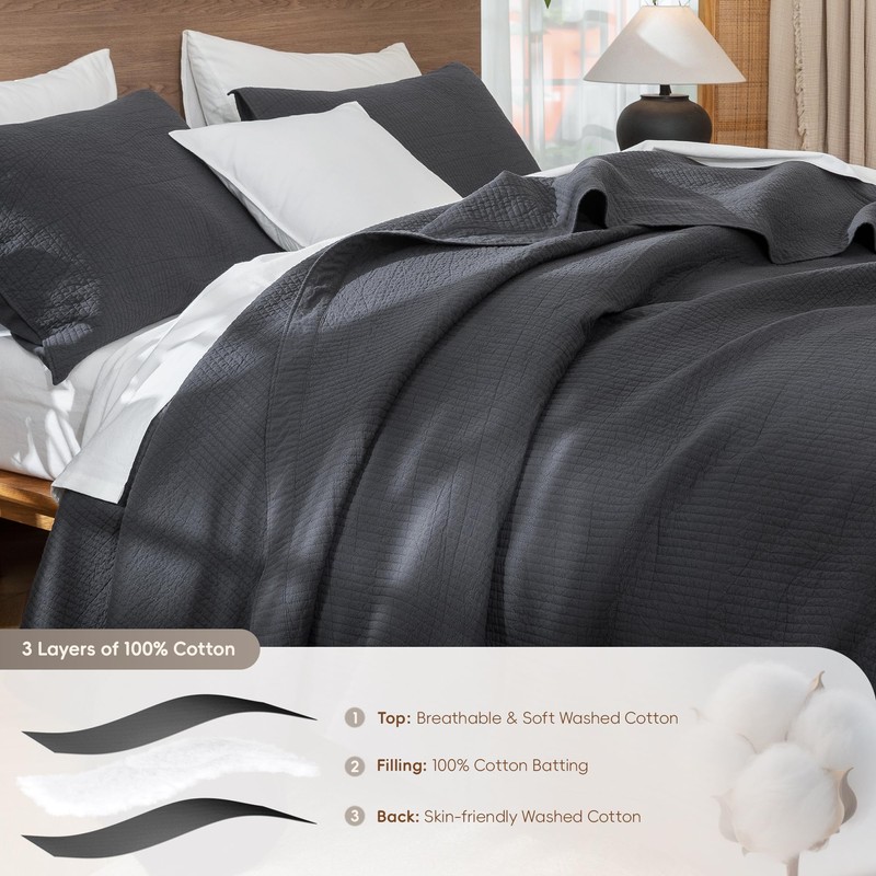 • Lightweight & All-Season Comfort: Designed to be lightweight yet cozy, this charocal grey quilt can be used as a bedspread and coverlet as well, which is versatile for year-round use—keep warm during chilly nights or layer it with other bedding for added warmth in winter.