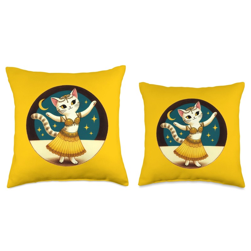 Moon Belly Dance Cat Belly Dancer Throw Pillow