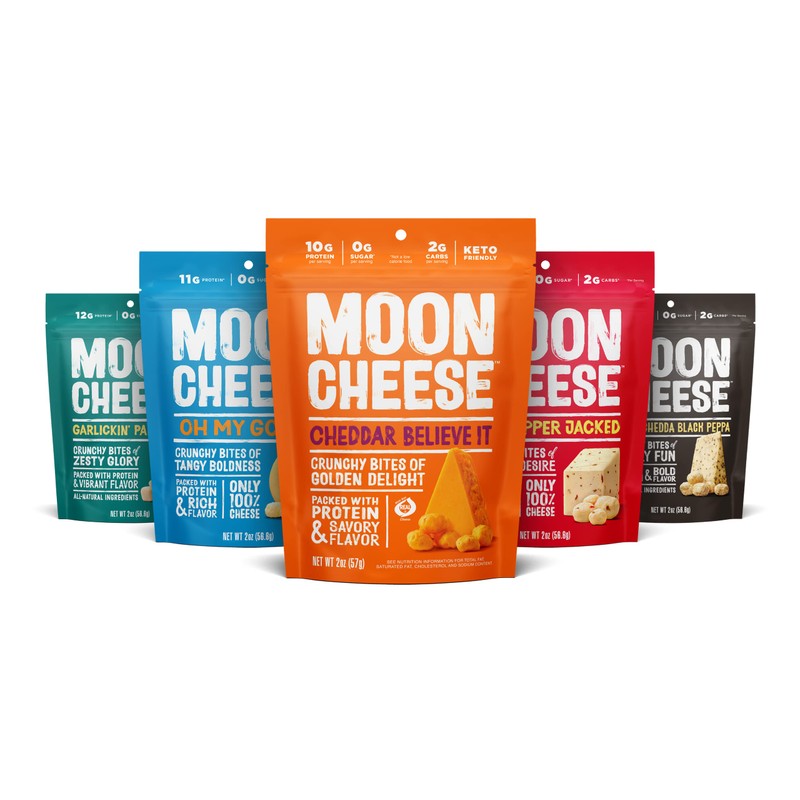- CHEESETASTIC PROTEIN SNACKIN': Moon Cheese snacks are rich in taste, texture and a crunch you won't find in fresh slices or sticks of cheese; Stock your pantry, take em' on the go, great for after school snacks and lunches