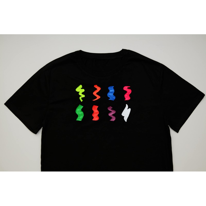 - VERSATILE APPLICATION – Perfect as a textile paint for clothes, t-shirts, bags, shoes, and canvas, and can also be used on wood, ceramic, and glass. Perfect for adding artistic designs to reveal a neon UV surprise.