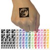 The sheet features 28 temporary tattoos in the design shown in a variety of sizes to suit your needs. Each size references the longest side of the tattoo: 2 inch (qty of 6), 1.5 inch (qty of 4), 1.25 inch (qty of 5), 1 inch (qty of 6), 0.75 inch (qty of 7).