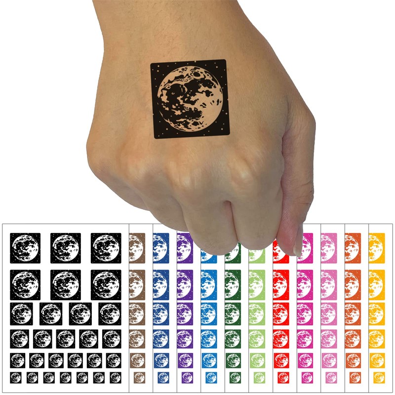 Moon in the Night Sky with Stars Space Astronomy Temporary Tattoo Water Resistant Fake Body Art Set Collection - Light Green (One Sheet)