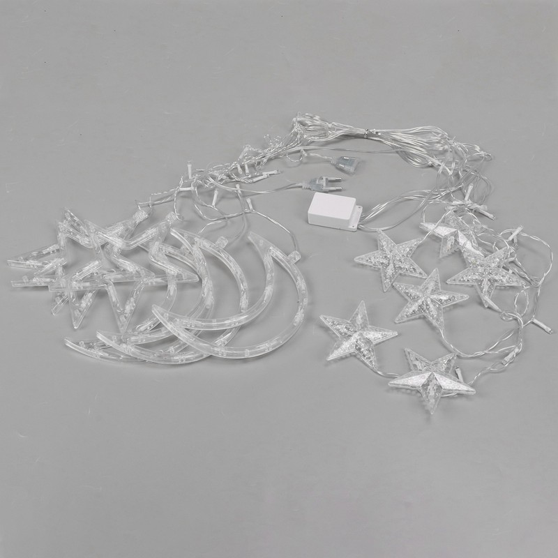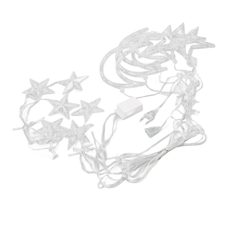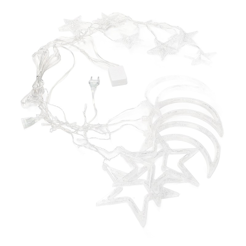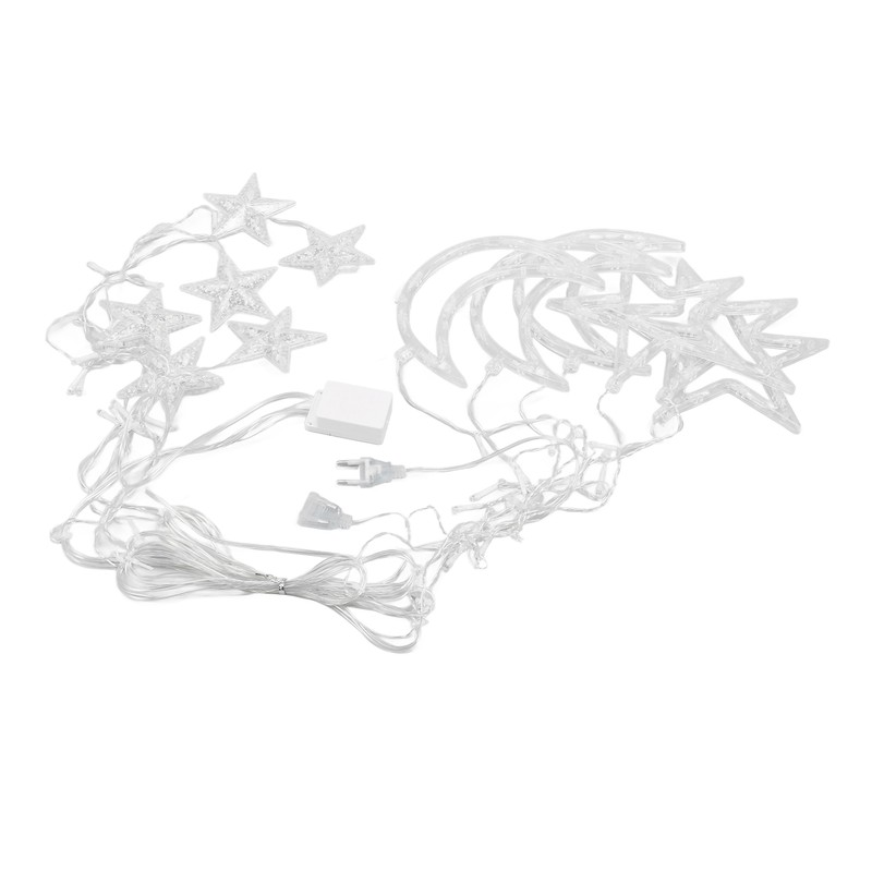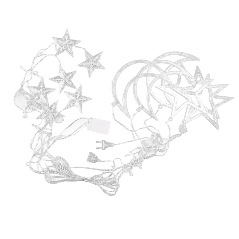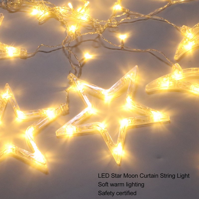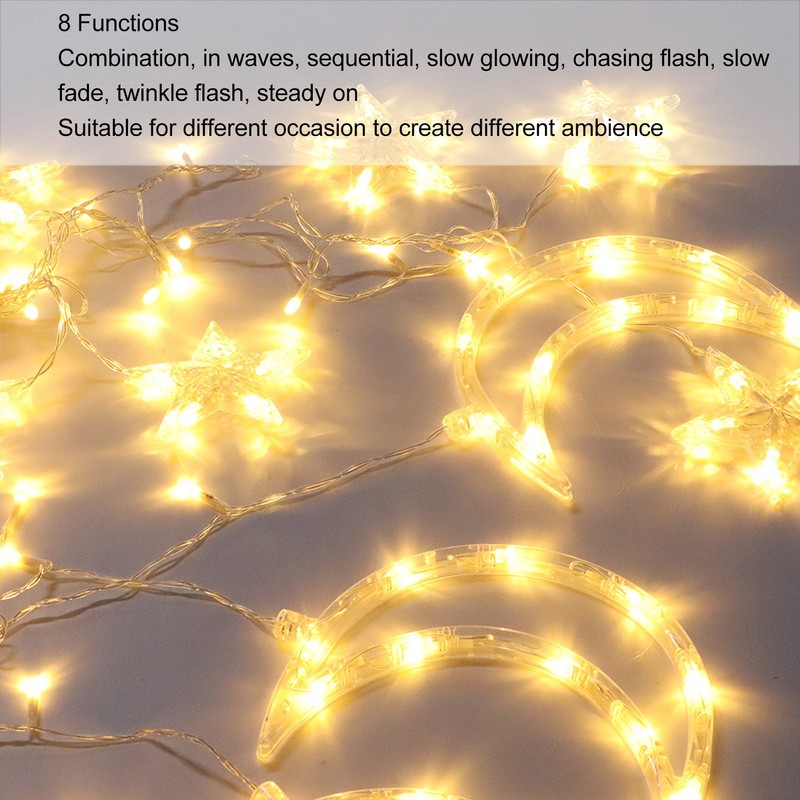 1、Warm Lighting: Pretty star and moon shape string lights is warm white, which gives off soft lighting in daytime and nighttime, is also a wonderful decoration in your room when not in use. 2、8 Functions: With 8 functions, combination, in waves, sequential, slow glowing, chasing flash, slow fade, twinkle flash, steady on, create different ambience. 3、Safety Certified: Moon and star lamp string is safety certified, plug in the power to use, no need to replace the battery or use power converter, convenient and reliable. 4、Stable Lighting: LED curtain string light adopts premium LEDs, which lights stably and not easy to heat up, ensures service life. 5、Widely Used: Suitable for indoor and outdoor decoration, great for Christmas, parties, Valentine's Day, wedding, home, window, festival, exhibition, restaurant, hotel, commercial building, shopping center, etc.