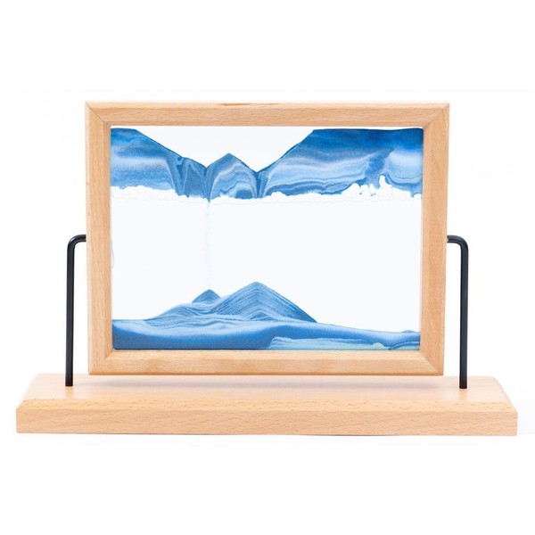 - Unique Rectangular Design: Our soothing, calming moving sand art picture stands out with its elegant wood frame and distinctive rectangular shape. This sets our blue sand art pictures apart from the more commonly seen circular designs available in the desk items market, making it a perfect addition to your office gadgets.