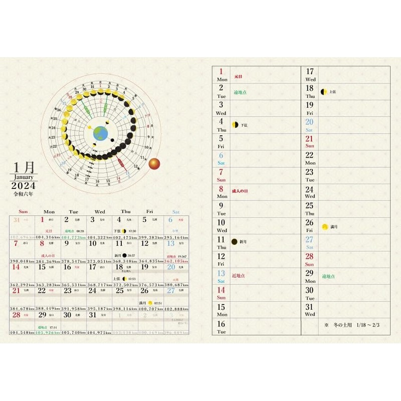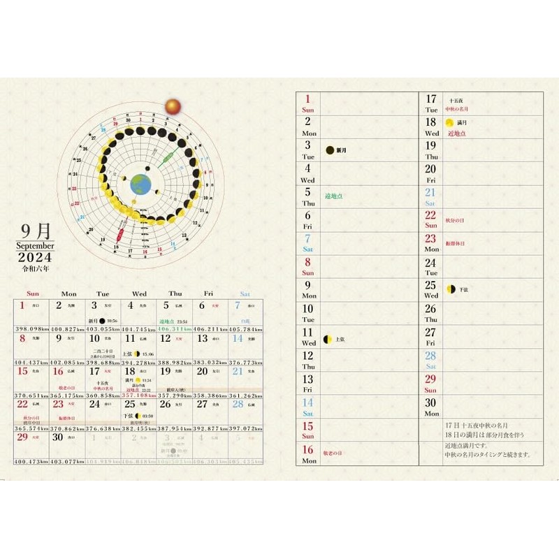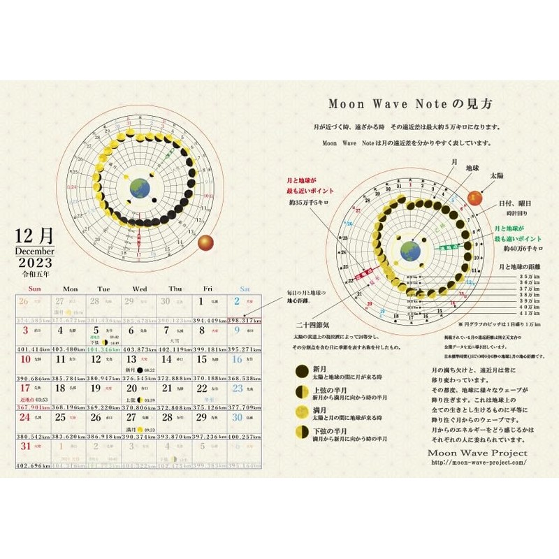 - A notebook that can be seen at a glance with the phase of the moon and the distance between the earth and the moon