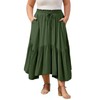 Moon Wood Women's Plus Size Boho Maxi Skirt Tiered Flowy High Waist Long Maxi Skirt with Pockets Green