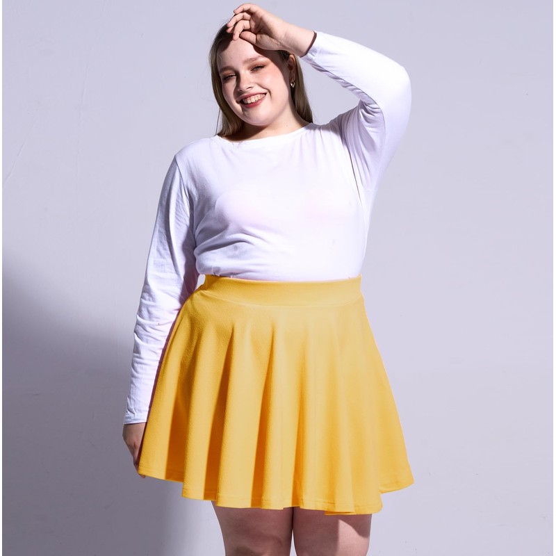 Moon Wood Women's Plus Size Mini Skater Skirt- Basic Versatile High Waisted Flared Casual Stretchy Skirts Yellow