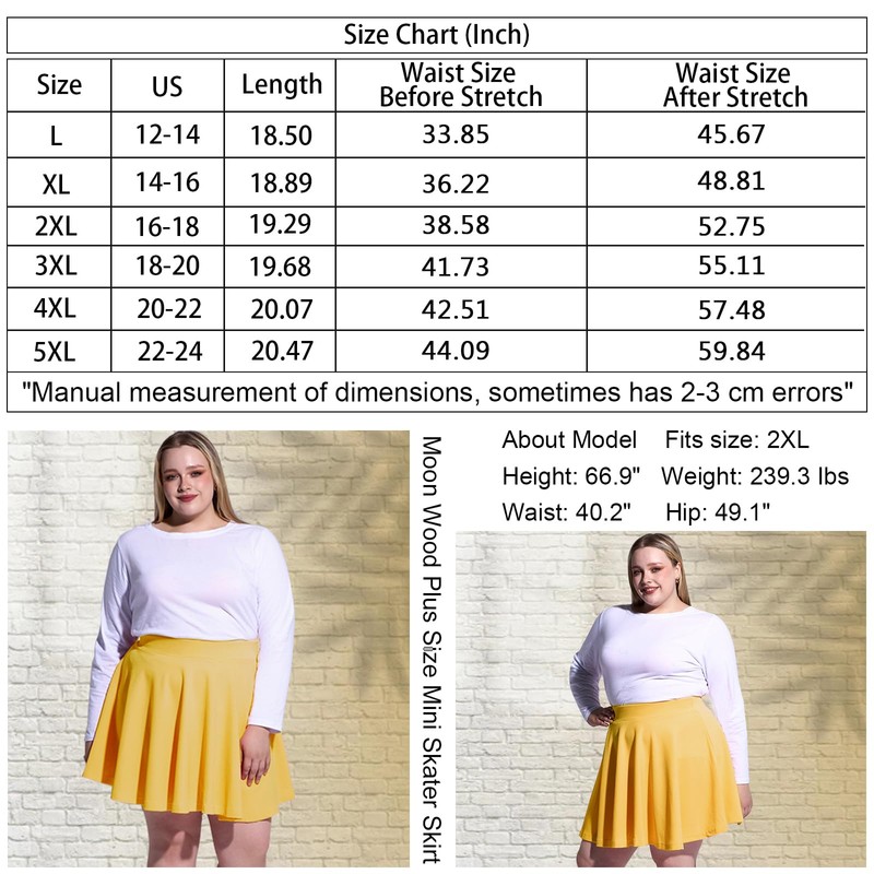 - [Truly Made for US Cute Girls] : Plus size skater skirt are designed with plus size in mind! Our casual mini skirt is sized up to enlarged and lengthen design, your waist won't feel constricted around and won't let your booty show through the skirt. Plus size skirts are available in a variety of sizes (1XL-5XL).