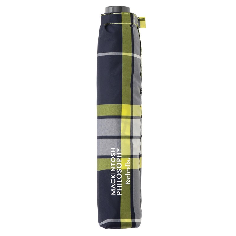- A stylish folding umbrella with a British plaid pattern with a tastefully placed brand logo.