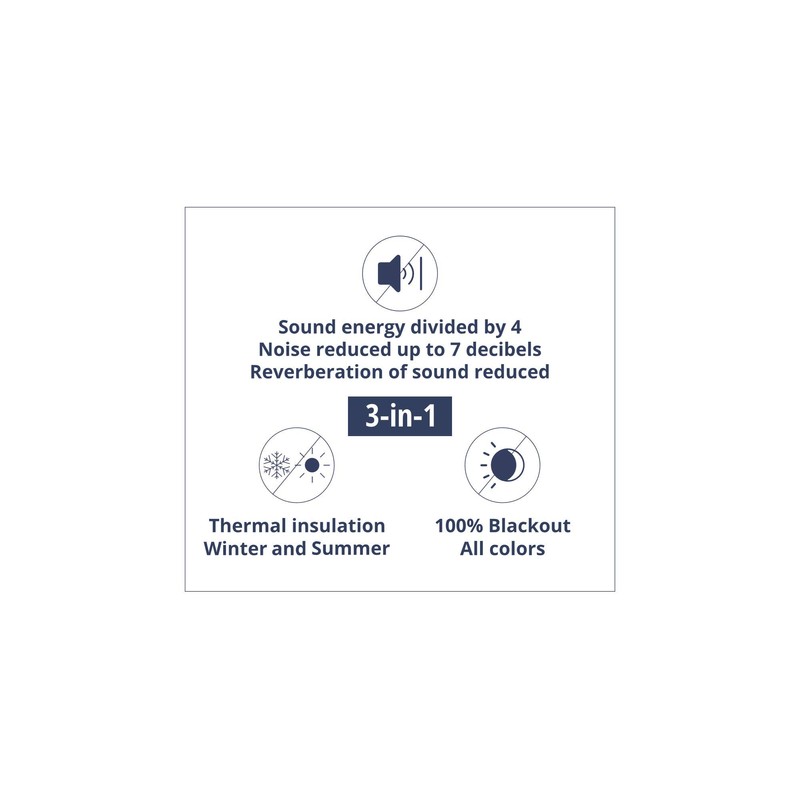 - 3in1 solution: Soundproof, Blackout and Thermal insulation - Patented Technology