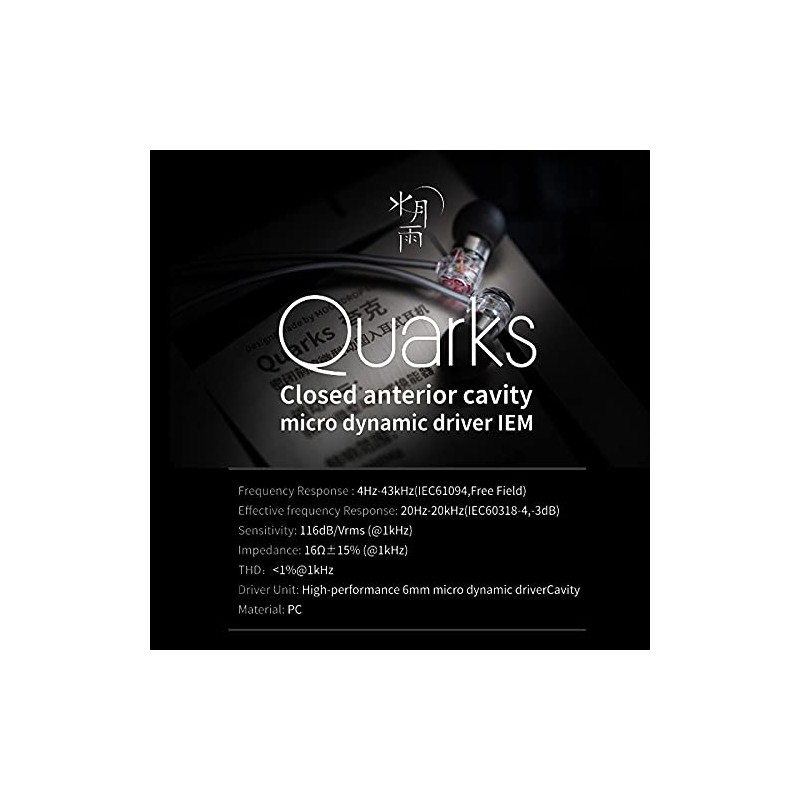 - Unbelievable amplitude frequency response curve ---Two years of repeated adjustments, Quarks has achieved incredible excellent performance with a closed structure. It has a frequency response curve that is highly in line with HRTF (head related transfer function), bringing a natural and open sound field. Moderate bass gain makes Quarks more musical, bringing a fuller ambience sound.