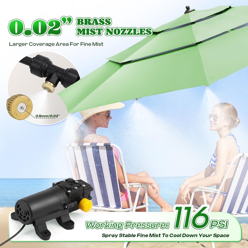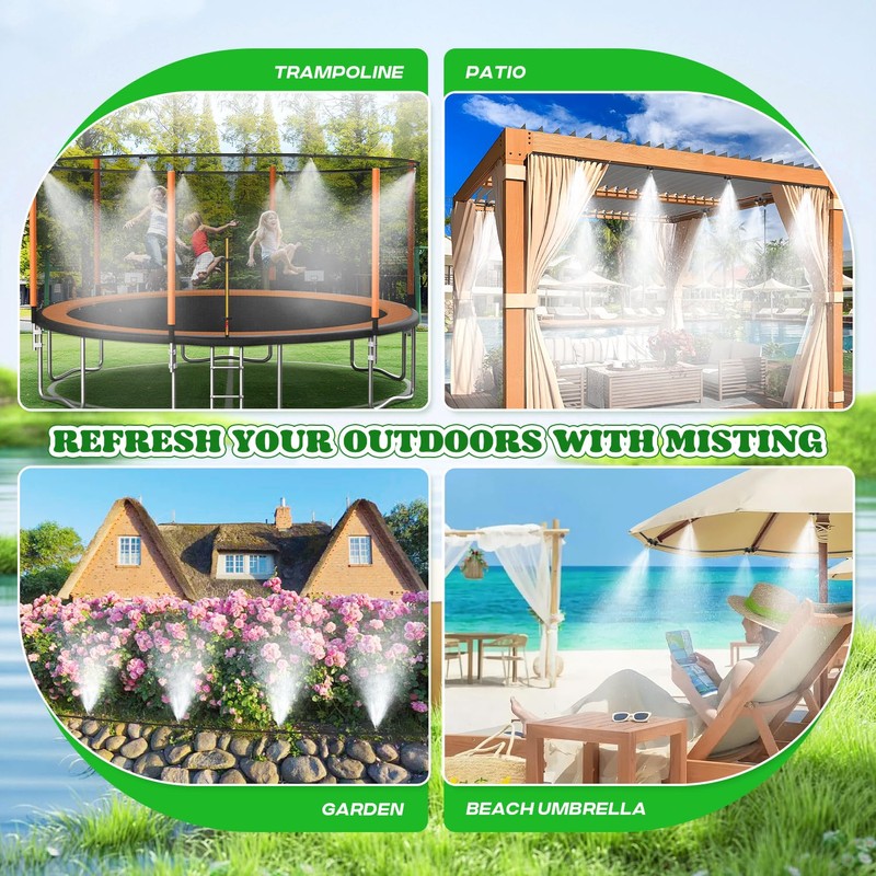 - Instant Cooling Solution Keep your outdoor spaces cool and enjoyable in the heat! With the help of precision brass mist nozzles, our mister system disperses water into fine mist droplets, absorbing ambient heat and lowering the surrounding temperature for a refreshing cooling experience.