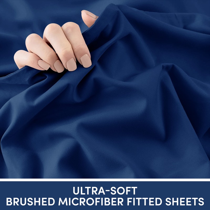 Moonlight Bedding Double Fitted Sheet - 25cm Deep Pockets Ultra Soft Brushed Microfiber Navy Double Fitted Bed Sheets Breathable, Fade Resistant Easy Care Double Bed Sheet (137 x 190 Cm)
