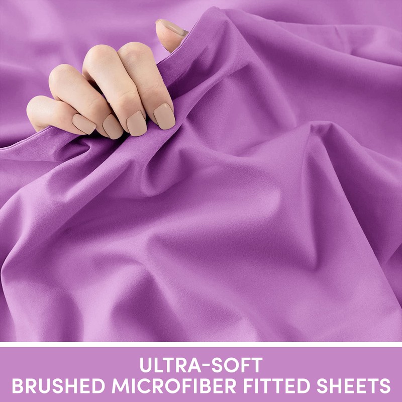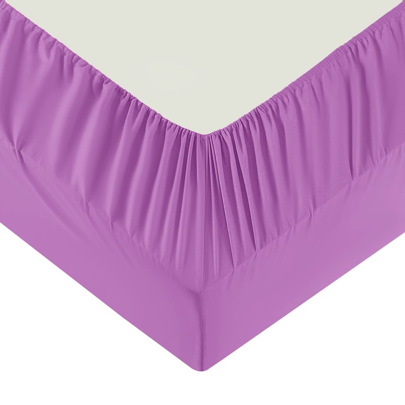 Moonlight Bedding Single Fitted Sheet - 25cm Deep Pockets Elastic Purple Fitted Bed Sheets - Brushed Microfiber Fade Resistant, Shrinkage & Wrinkle free Easy Care Fitted Bed Sheets (91 x 190 Cm)