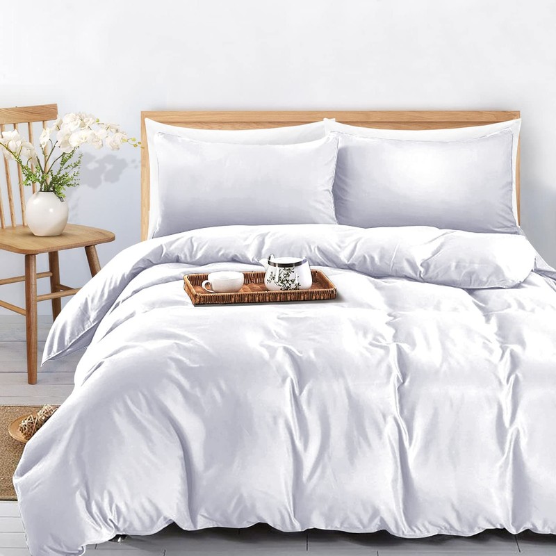 MOONLIGHT20015 Double Duvet Cover - White Solid Soft Double Bedding Duvet Cover Set with 2 Matching Pillowcases