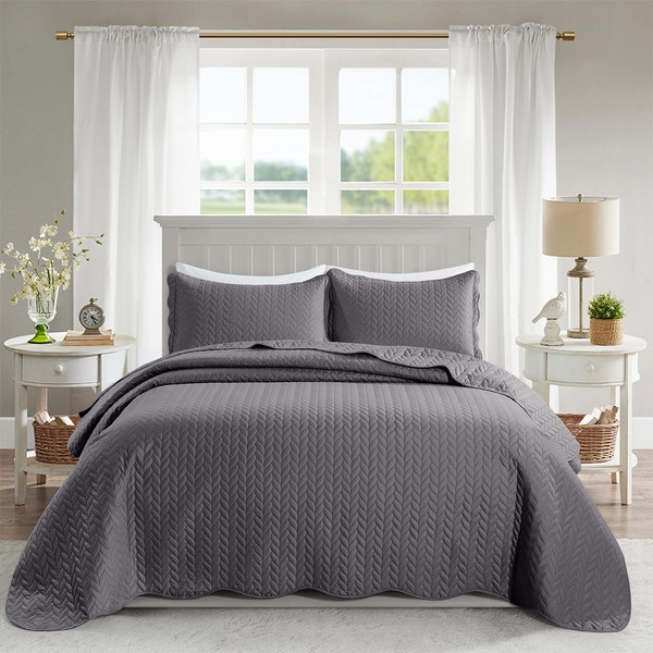 MOONLIGHT20015 Twin Quilt Set - Reversible Summer Lightweight 2 Pcs Microfiber Coverlet Set Size (66” x 86”) - 1 Pillow Shams (20” x 26” + 2”) Embossed Quilt Bedspreads (Grey)