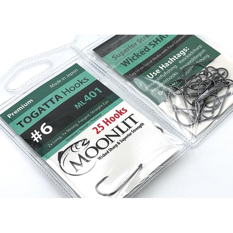 Moonlit TOGATTA ML401 Barbless Fly Tying Hooks | 50pack | Premium Made in Japan | Streamer Hook Style (#8)