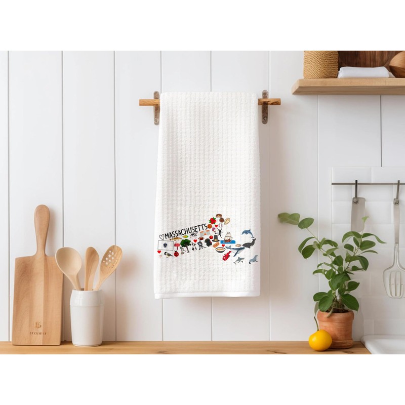 Moonlit93 Massachusetts State Map Kitchen Towel, U.S. State Souvenir Tea Towel, Multi-Purpose Towel, Soft & Absorbent Kitchen Towel, Towel for Massachusetts Lovers, Travel Massachusetts Souvenir