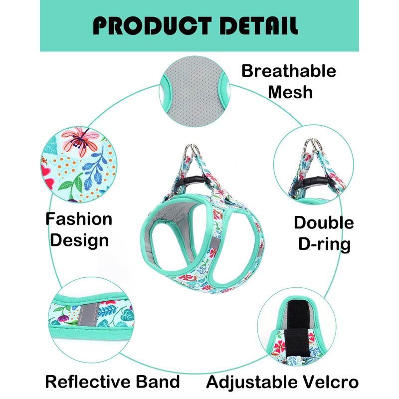 - Floral Pattern :We offer several boy girl patterns dog harness ,they will make your pet more beautiful and stylish. Inside of the harness,it is made with a soft, breathable air mesh, this lightweight pet harness is perfect for walks all year round.