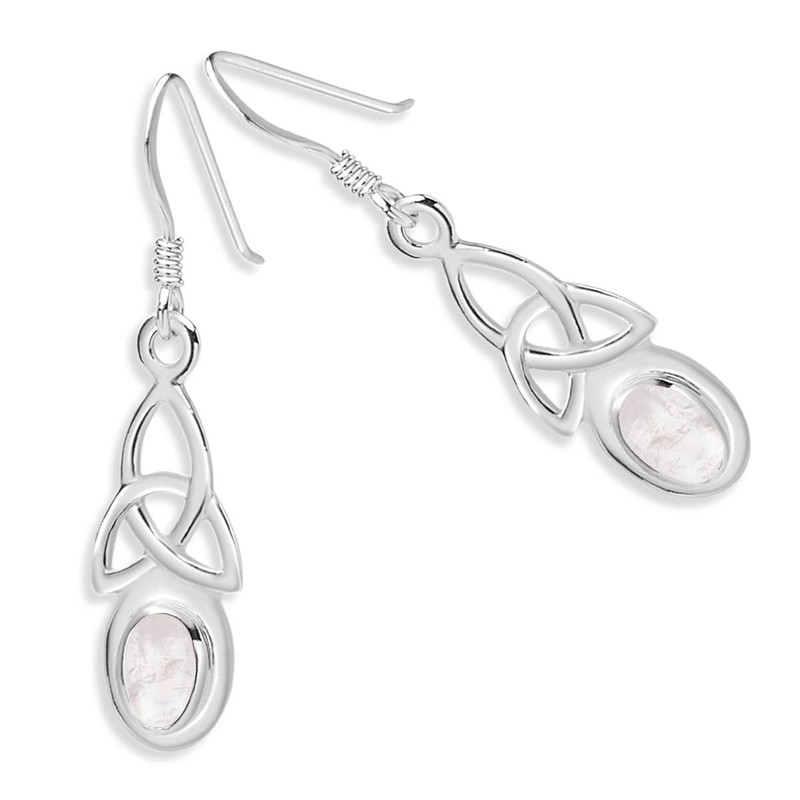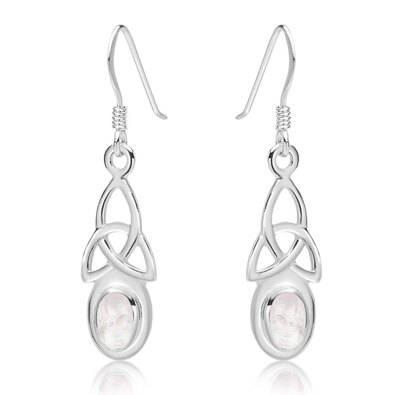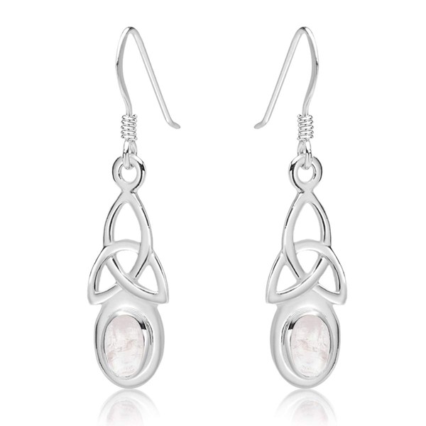 Moonstone Earrings - 925 Sterling Silver Drop Hooks Earrings - Trinity Knot - Silver Dangle Earrings - Celtic Jewellery Earrings