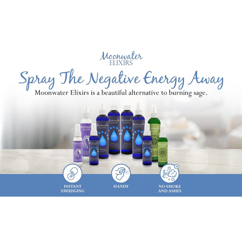 - Smokeless Sage Spray for Cleansing Negative Energy C Moonwater white sage spray purifies your home, office, or car without smoke. Convenient and effective, it's the perfect pillow spray for sleeping, aura spray, and yoga scents spray to elevate mindfulness.