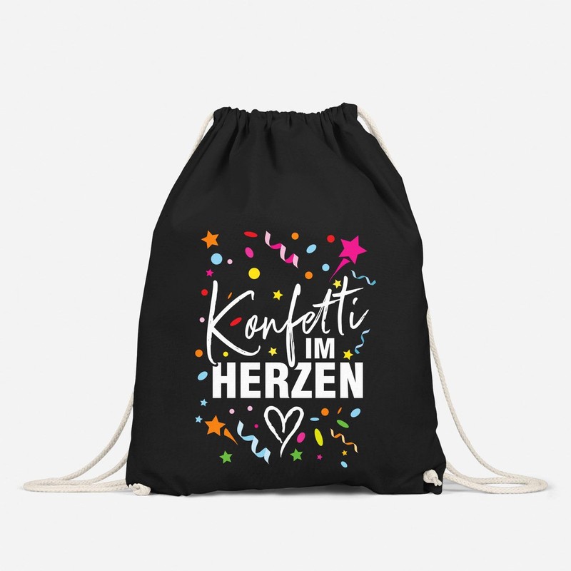 - The perfect gym bag for fancy dress and carnival season and the right addition to any costume. With matching saying "Konfetti im Herzen" rin Must Have for all women and girls