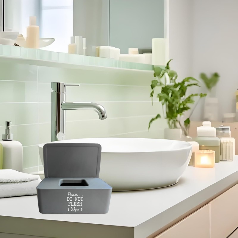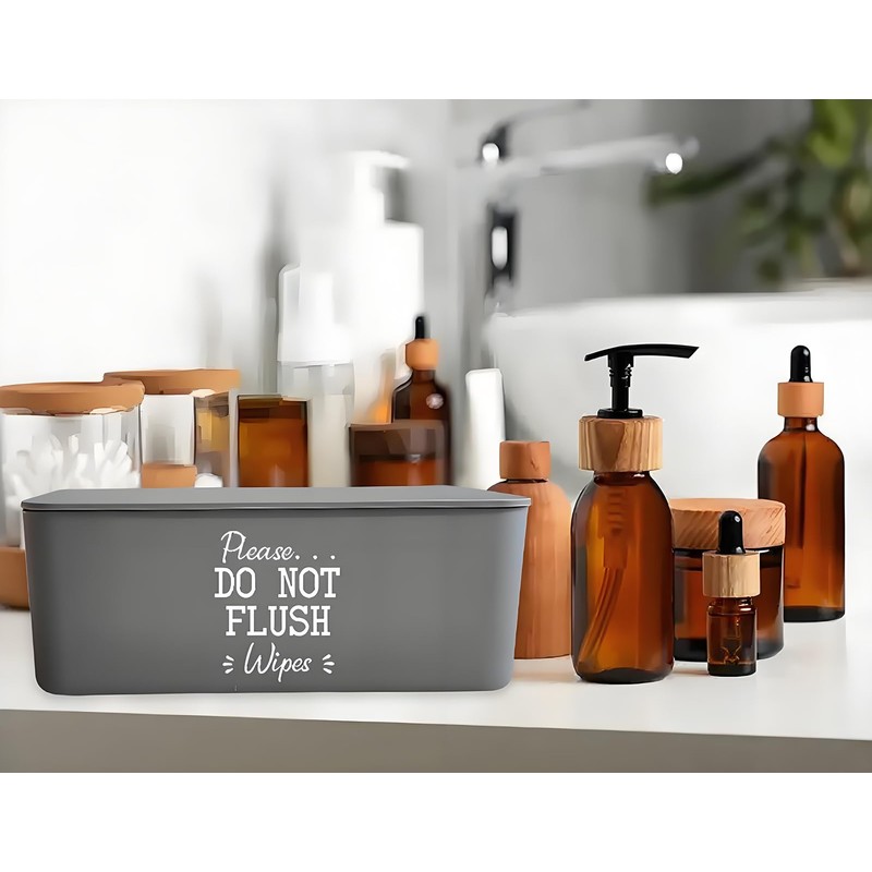 - Chic Unflushable Wipes Holder: Please...DO NOT FLUSH Wipes printing on the front of box makes the modern wipe container add a bit cuteness. Cute little reminder to not flush those so called flushable wipes. A lovely wipes dipsenser offers a reminder to not flush and for a challenge person that needs reminders this wipes box is perfect