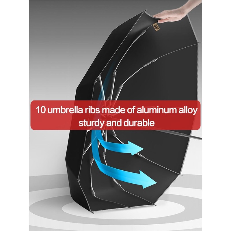 - ☂[10 sturdy umbrella ribs, super strong wind resistance] This umbrella uses 10 sturdy ribs that combine softness and strength, providing better wind resistance and durability than the ordinary 8 ribs. The aluminum alloy pole and fiberglass umbrella bone are super strong and tough, making them less prone to rust, fracture, or bending whether blown by strong winds or drenched in heavy rain.