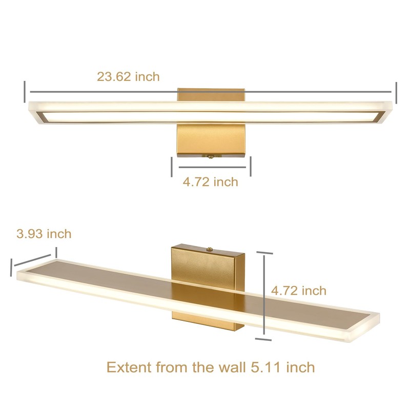 - Elegant Gold Finish:This gold LED bathroom vanity light exudes sophistication, adding a touch of luxury to your bathroom decor. Its elegant finish complements various design styles, from modern to traditional.