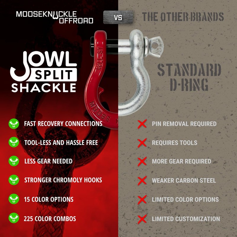 - EXTREMELY SAFE AND STRONG: Unlike a traditional lifting shackles we beef up this 3/4 inch bow shackle by giving the body side profile a taper that thickens and adds more material through the length of the shackle making it extremely safe and strong to handle the toughest recoveries. All inner and outer edges feature large curved soft shackle friendly edges so they will not damage your recovery ropes and other towing gear.