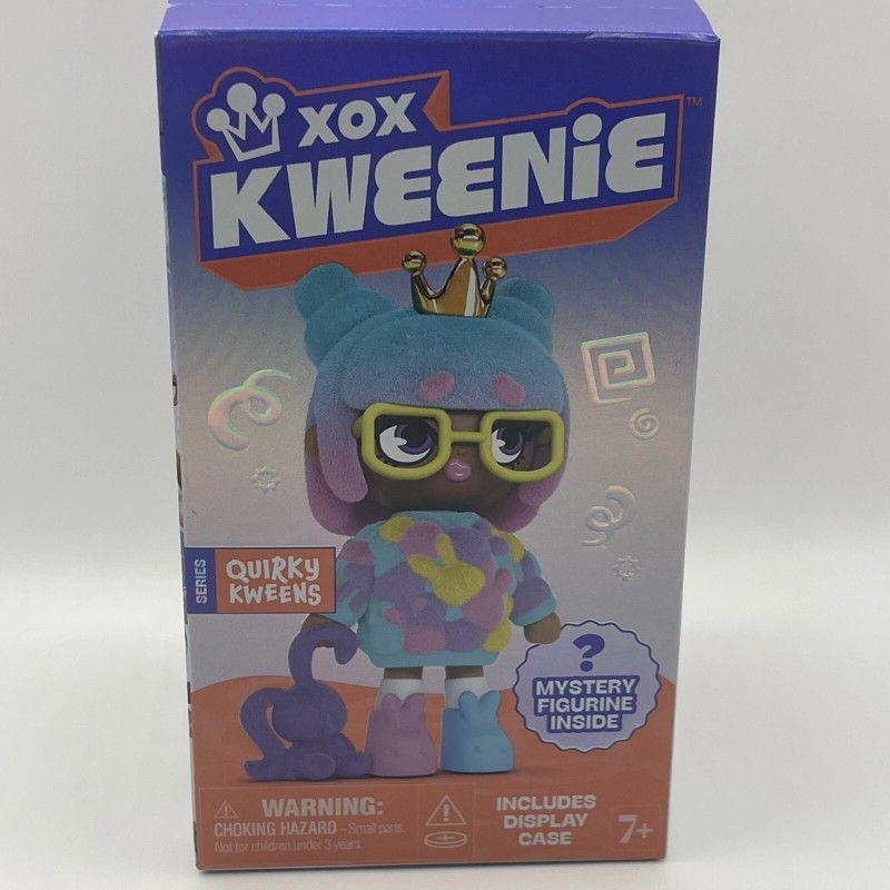The XOX KWEENIE Quirky Queens set for 2024 includes a doll with varying hair colors and accessories in a case. Produced by Moose Toys, the original doll is part of the XOX Kweenie franchise. Made of plastic, the item is not antique or vintage. The doll measures 4 inches in width and is a new, sealed product.