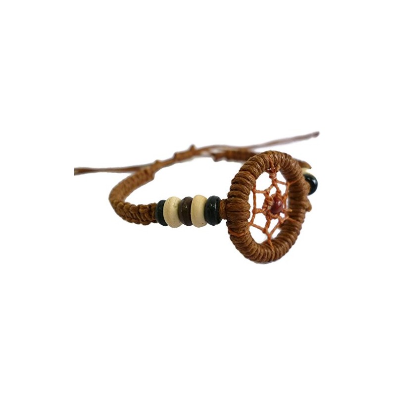 Moose546 Dream Catchers shambhala Bracelet 6" to 9" with a Sliding Knot Adjustable Closure Braided Bracelet (Light Brown)