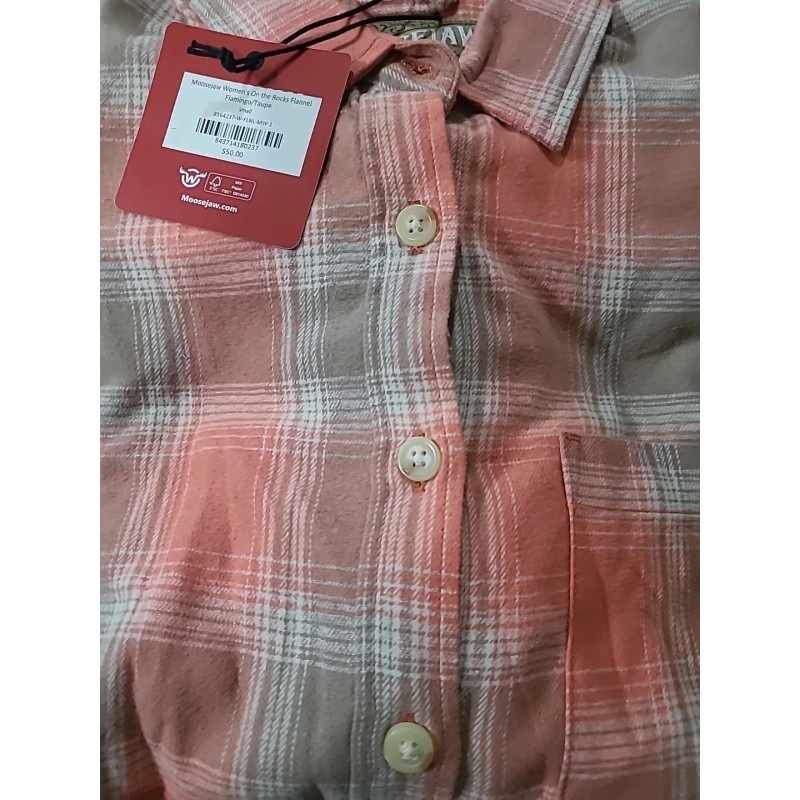 Moosejaw 100% Organic Cotton Womens Flannel Button Up Moosejaw Cabin Flamingo/Taupe SMALL