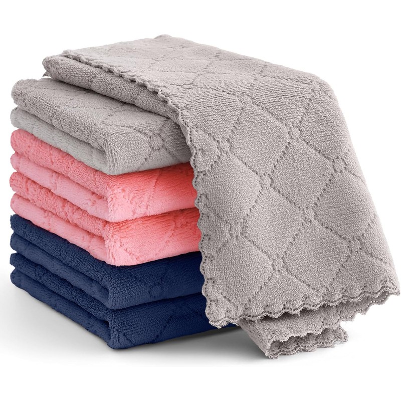 Moosfor Cleaning Cloths, Microfibre Cloths, Washable Cleaning Cloths, Microfibre, Soft, Lint-Free, Tea Towels, Kitchen Towels, Pack of 6, 30 x 30 cm, Assorted Colours