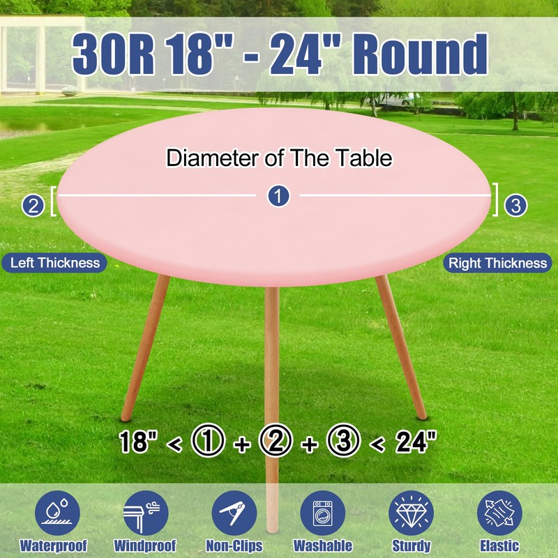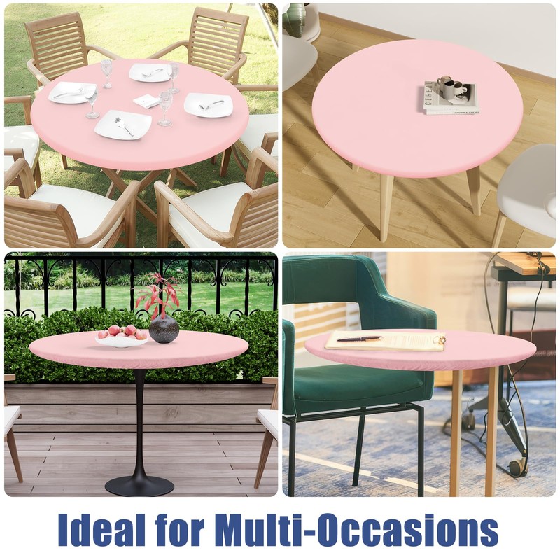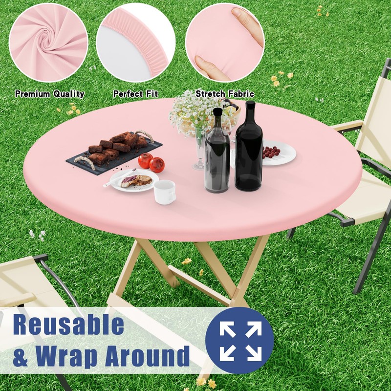 Moosfor Round Spandex Tablecloth, Elastic Fitted Waterproof Tablecloths for 18"-24" Tables, Stretch Washable Picnic Table Cover for Camping, Dining, Indoor and Outdoor, Pink
