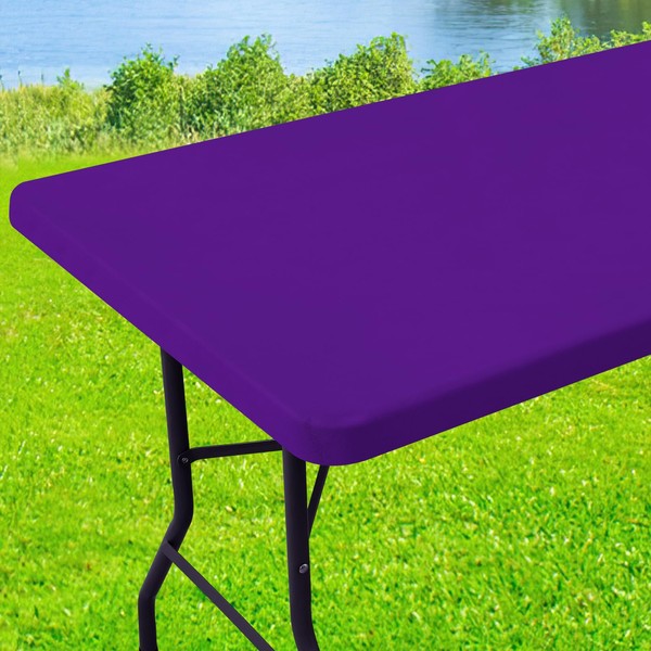 Moosfor Spandex 6 Foot Rectangle Table Cloth, Elastic Fitted Tablecloths for Picnic, Stretch Washable Patio Table Cover for Outdoor, Camping, Banquet and Parties (Purple, 30"x72")