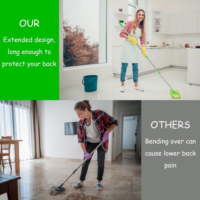- [Enhanced Cleaning Efficiency]: By attaching the mop handle to the mop head, you can easily clean hard-to-reach areas such as tight spaces or marginal corners under sofas, beds, or other furniture.