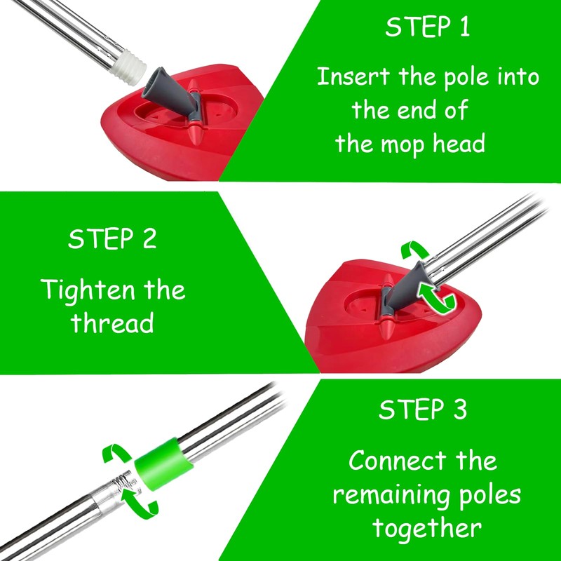 - [Usage Instructions]: To assemble, connect each section of the mop handle to the product's base where you wish to replace the handle. Make sure that each part of the mop handle is tightened and can work instead of the original mop handle.