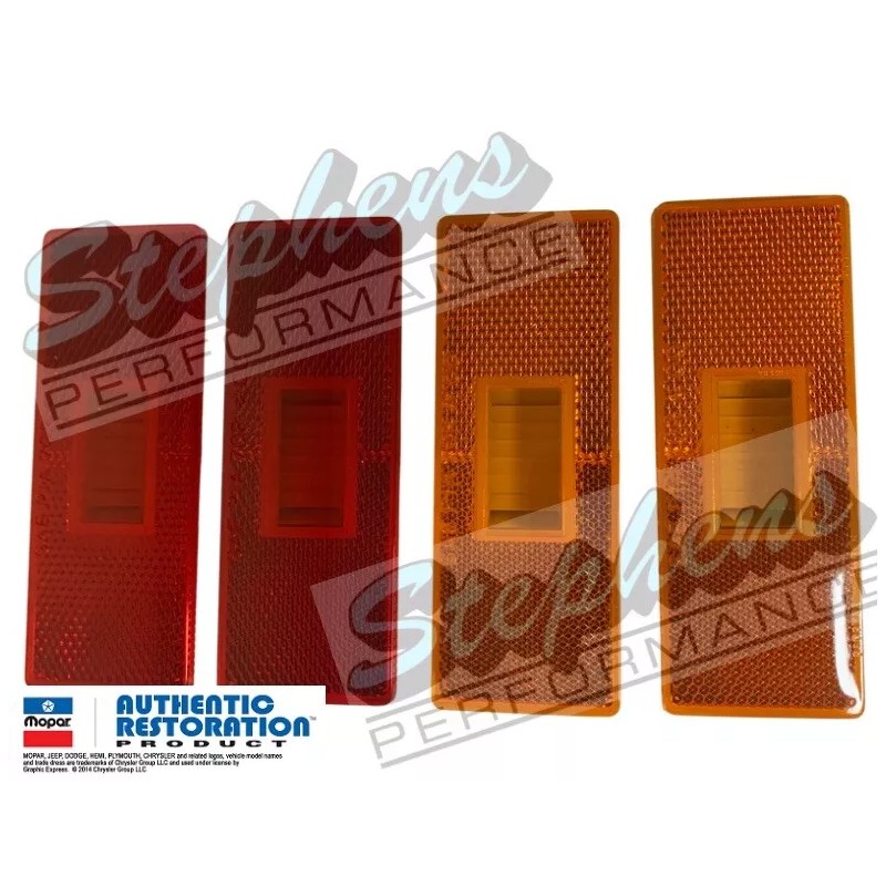 1970 Mopar Plymouth A & B Body Side Marker Light Lense Reflector 4 Pc Set. Includes adhesive backing.