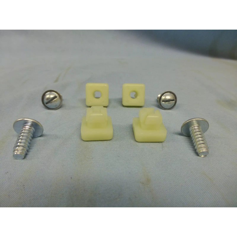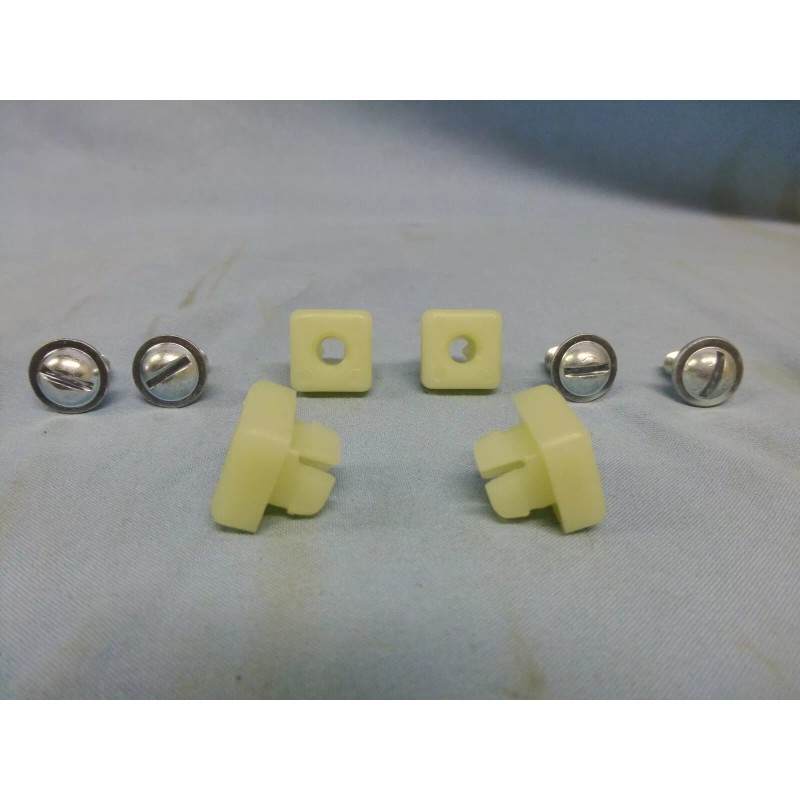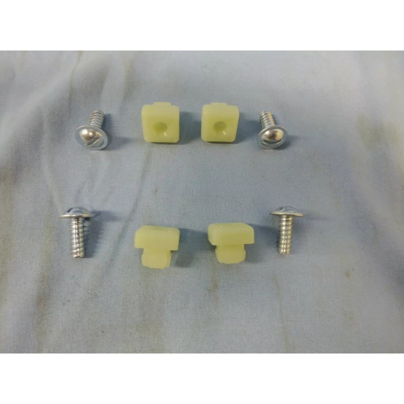 Set of 4 NOS Mopar Licence Plate Screws and 4 NOS Mopar Licence Plate Nylon Inserts. Fits 1964- 1974 A B E C body Mopars. These are good quality parts.  Look how thick these nylon inserts are. These originals are much heaver duty then the cheap aftermarket Chinese ones.