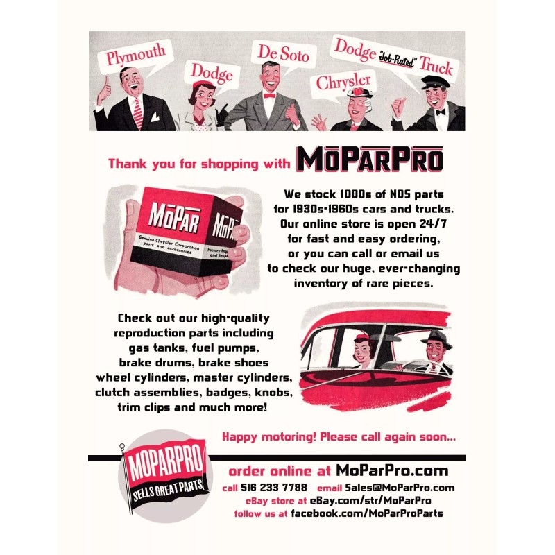 Correct for 1933 1934 1935 1936 1937 1938 1939 1940 1941 1942 1946, 1947, 1948, 1949, 1950, 1951, 1952, 1953, 1954 Dodge cars, all