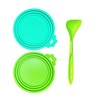 • 5【Recommend Use】For Pet Food Cans, Campbells soup, Tuna or Sardines Cans, Canned Fruits and Veggies, Glass Jars and etc.【Package】Box set of 2 lids in Green+Cyan, 1 Green Spoon