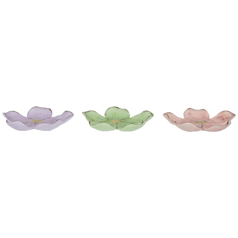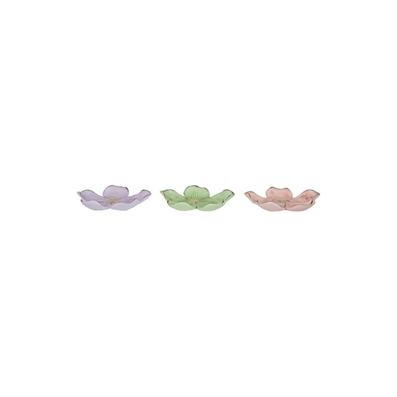 Mopec Small Pink Flower Plate, Green, Lilac 12.5 cm, Pack of 3, Multicoloured, One Size, 3