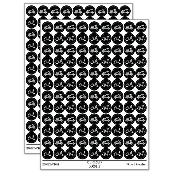 Moped Scooter Motor Vehicle 200+ Round Stickers - Matte Finish - 0.50" Size - Black