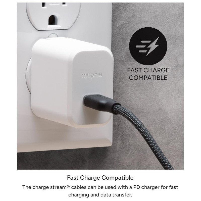 mophie Charge Stream USB-C to Lightning 2m/6ft Silicone Cable - Enduraflex Reinforced, 30W Fast Charging, Ultra-Durable & Flexible Design