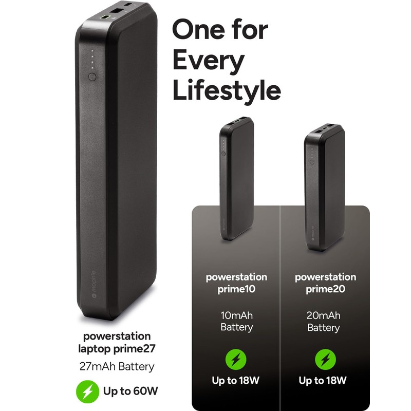 Mophie Powerstation Laptop Prime27-27,000mAh Portable Power Bank with 60W USB-C PD Fast Charging, Multi-Device, LED Indicator, Eco-Friendly, Type-A, USB-C Compatible