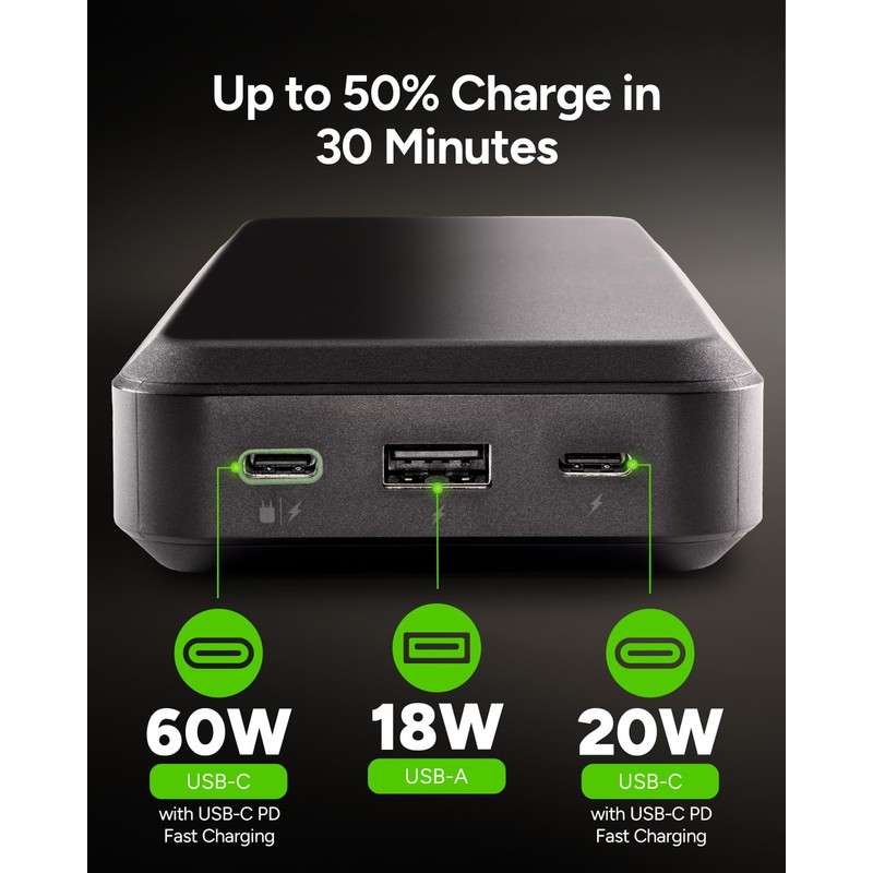 - 60W USB-C PD FAST CHARGING: Recharge 50% of your battery in just 30 minutes; ideal for rapid charging of phones, tablets, and laptops