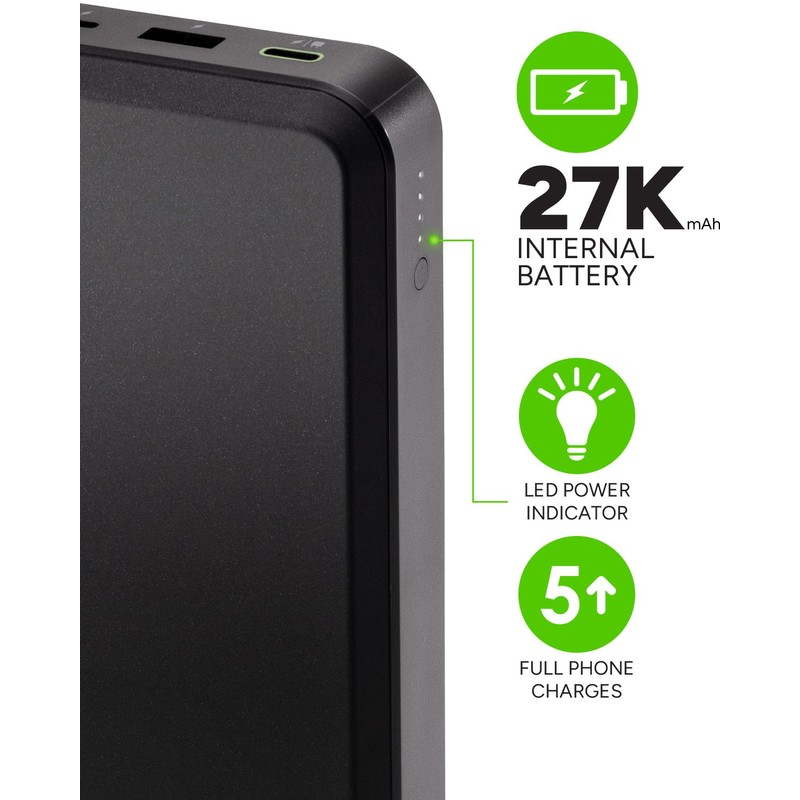 - MASSIVE 27,000mAh CAPACITY: Extend your device life on-the-go; get up to five full iPhone charges for uninterrupted usage